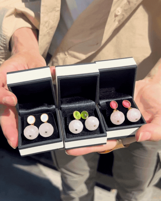 Each creation is made with sterling silver, 18k or 22k gold plating, and thoughtfully selected semi-precious stones, including Swarovski crystals.