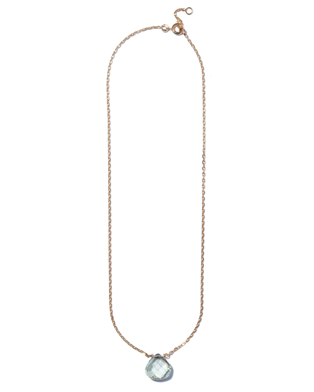 This Laurence Coste creation has a green amethyst drop on a gold chain to create a feminine and elegant necklace, perfect for any age group. This necklace will make a great gift. Click below to add this piece to your basket.