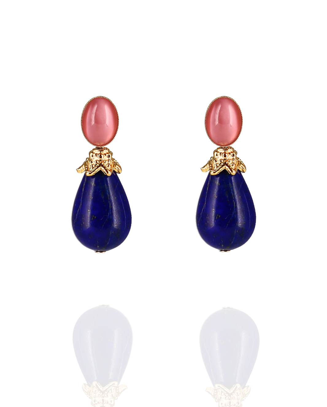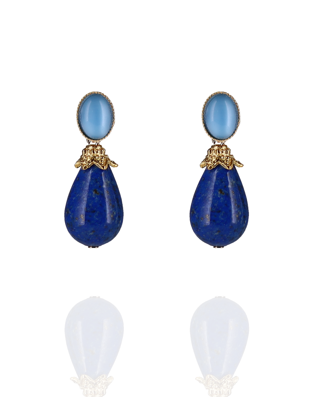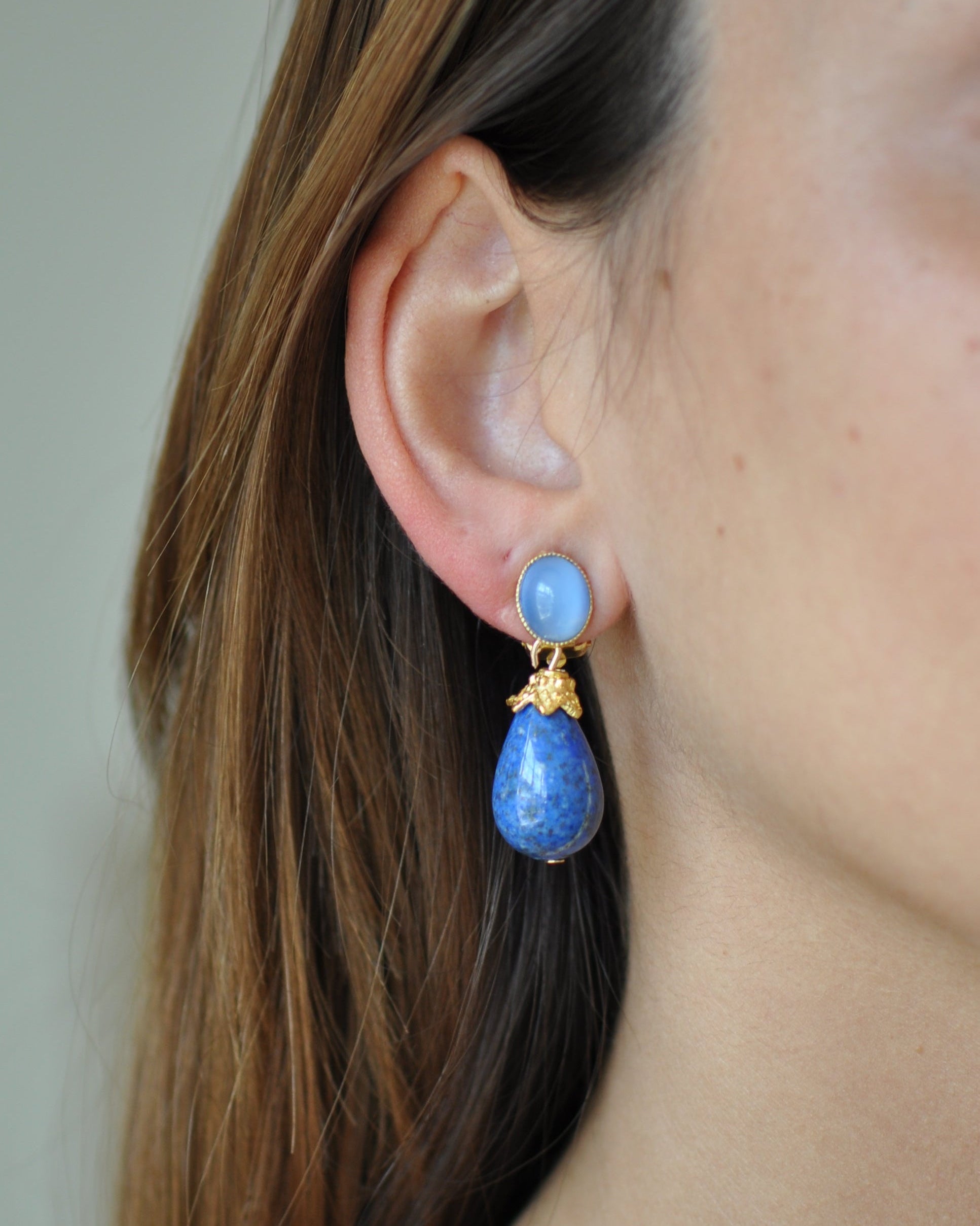 These pretty, versatile earrings combine a Lapis drop with a small oval Venetian top.