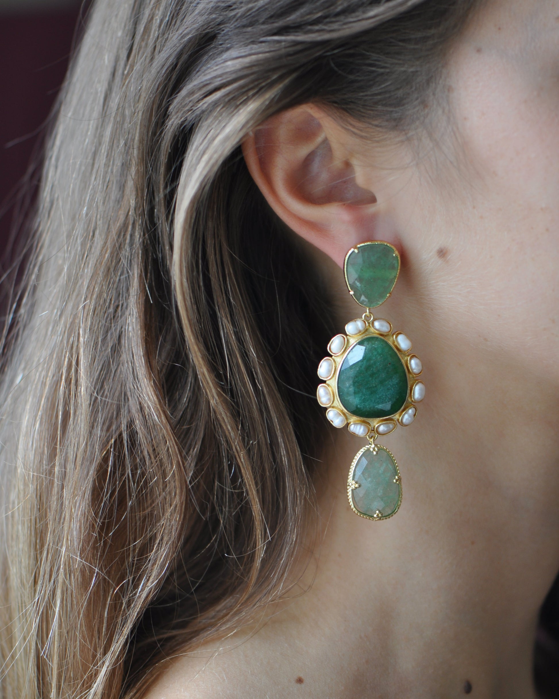 They feature natural stones at the centre, delicately surrounded by freshwater pearls.