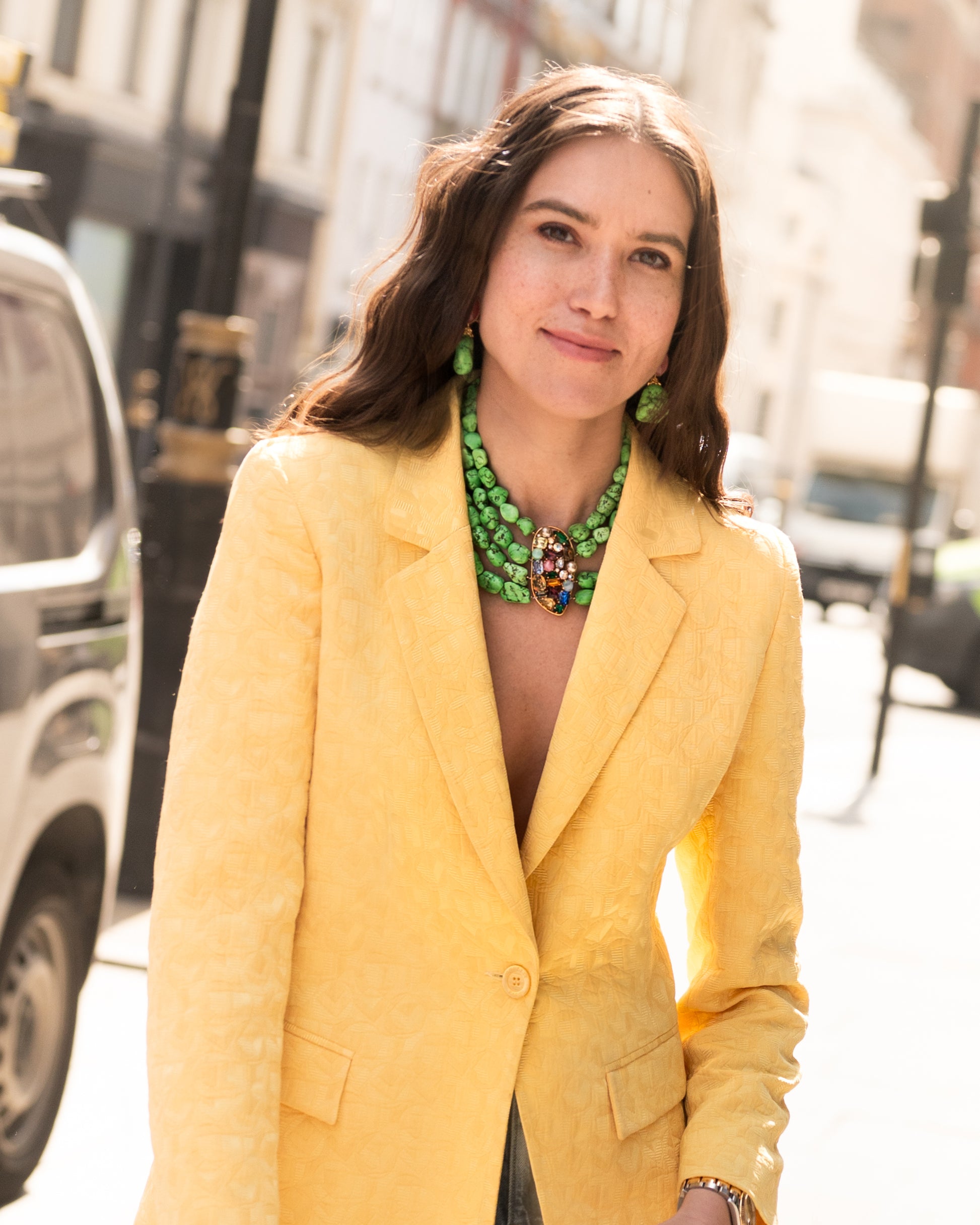 Created in celebration of fashion-tech journalist Natalie Salmon, a longtime friend of the brand and a muse, this special piece reflects her instinctive style and love of colour. Her work in fashion and culture, combined with a bold, instinctive style, made this collaboration a natural fit.