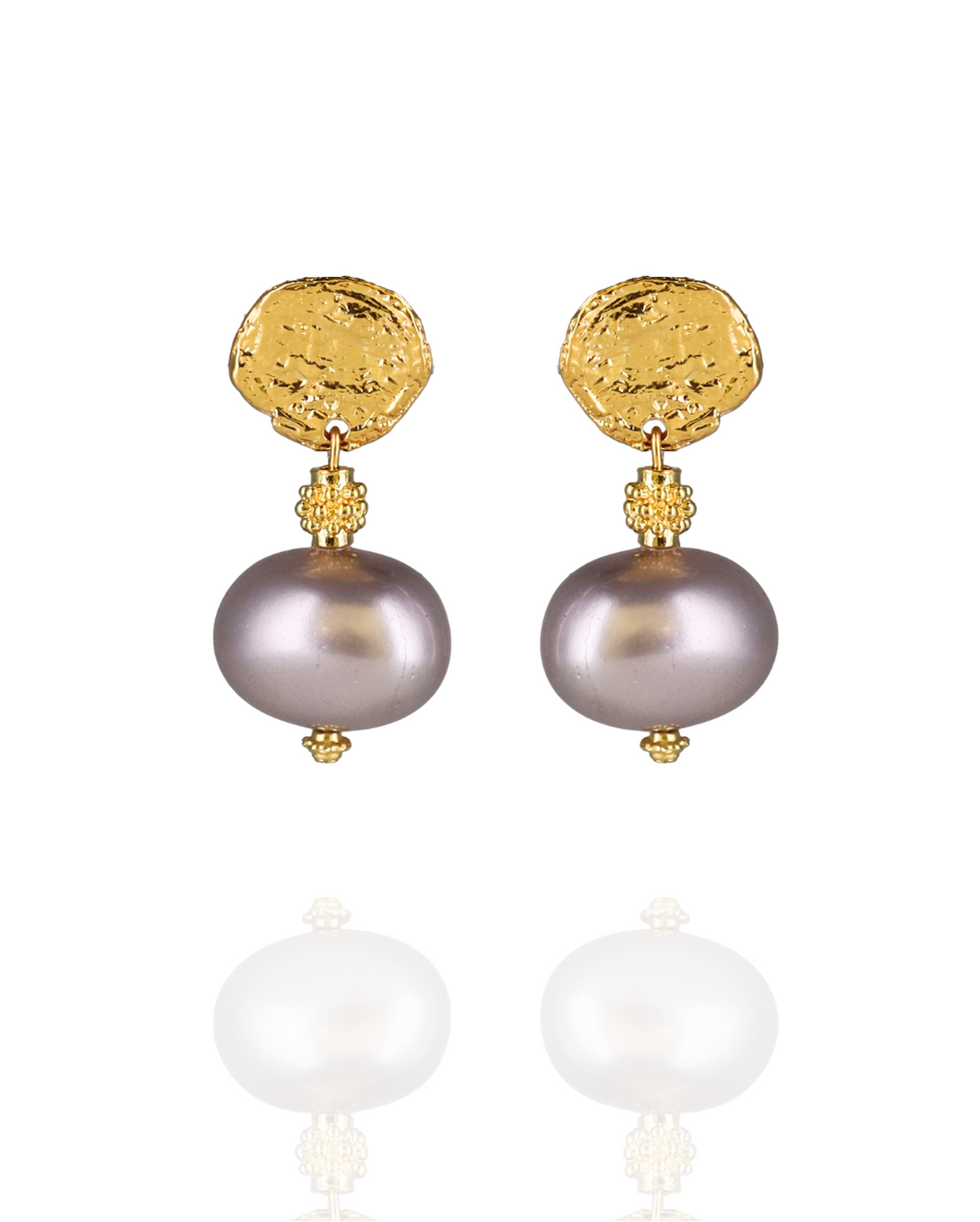 These earrings feature manmade pearls crafted from reconstituted pearl powder. A modern take on the classic pearl, available in a range of elegant colours.