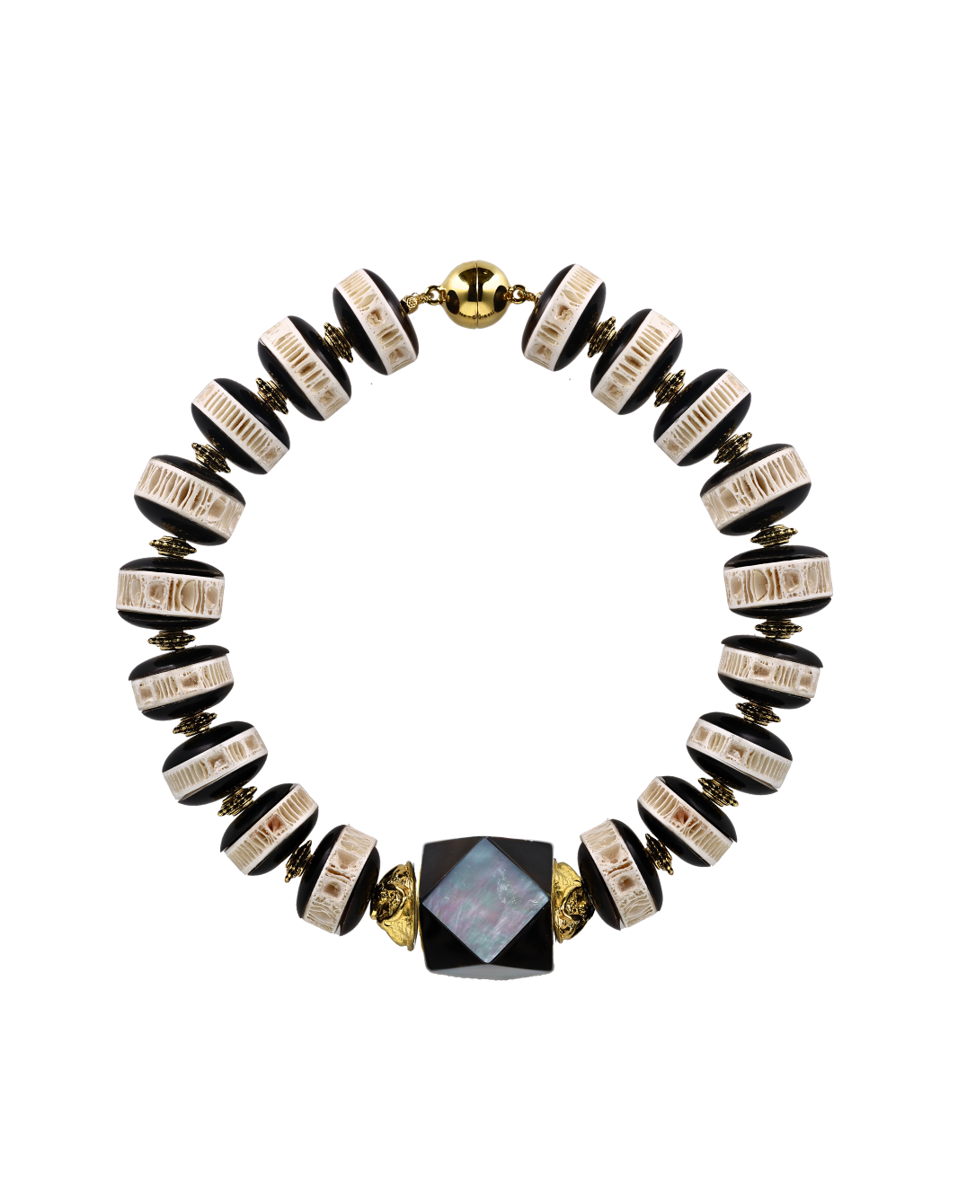 Bold in contrast and balanced in form. Compliment this necklace with the Checkmate Earrings.